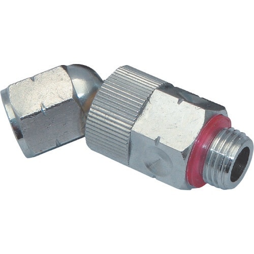 45度で360度回転し、よじれ防止します。オス、メス両方のストレートネジにパッキンが付属されています。高圧2.6MPaまで対応します。エアー配管のどこへでも取付け出来ます。 |