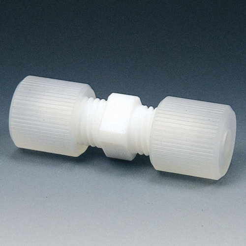I型チューブ接続ジョイントです。Wフェルール式のジョイントでは、耐圧が常温で0.8Mpaまでもちます。機能上液がスムーズに流れるように流量抵抗が少ない設計となっています。