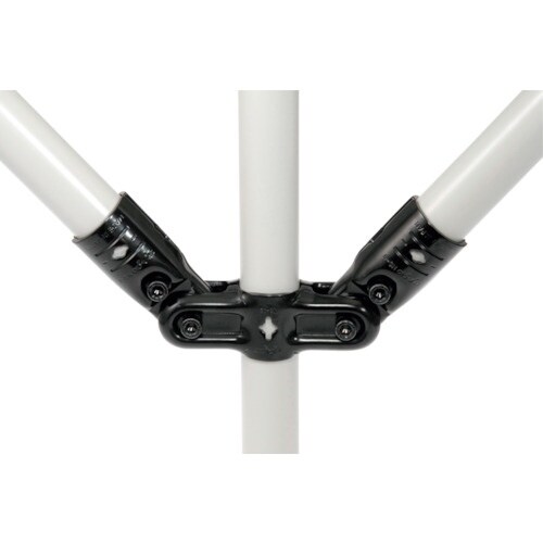 ジョイント貫通部に十字穴を付けてあり、組み立て時の位置決めが簡単です。固定用にビス・リベット止め穴が付いており、組み立て時の作業性をアップします。