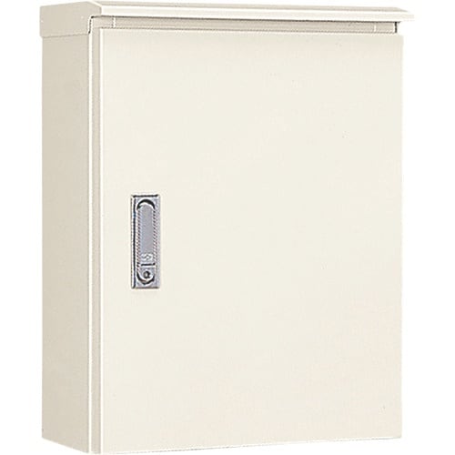水切構造、防塵・防水パッキン付の屋外用制御盤キャビネットです。施錠可能な防水平面ハンドルを採用しています。(キーNo.N200)屋外用の盤用キャビネットとしてもご利用ください。 |