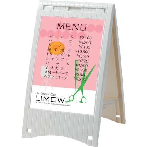 オリジナルデザインです。折りたたみ収納可能です。サインスタンドに。 |