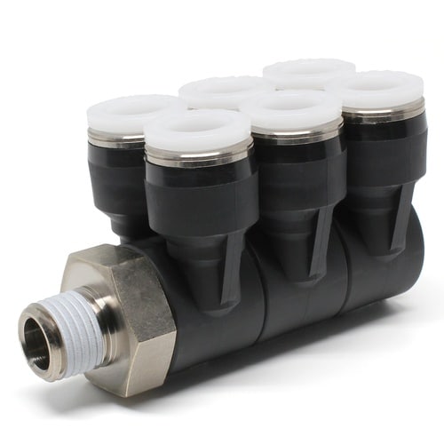 あらゆる空気圧配管に対応。チューブの取出角度が自由に。条件により水使用も可能。集中配管が可能。
