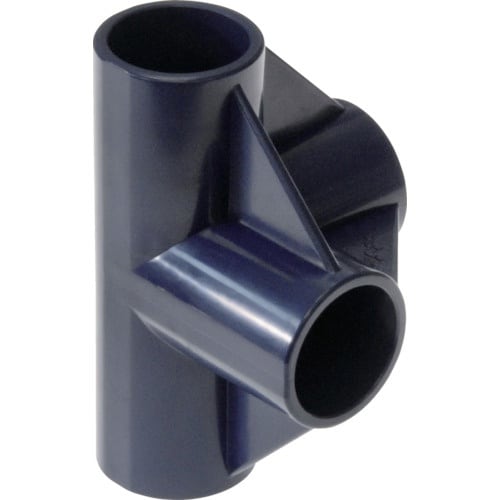 専用接着液でパイプと固定するプラスチックジョイントです。腐食しないので水廻り、屋外での使用にも適しています。