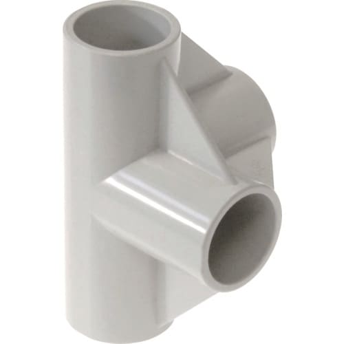 専用接着液でパイプと固定するプラスチックジョイントです。腐食しないので水廻り、屋外での使用にも適しています。