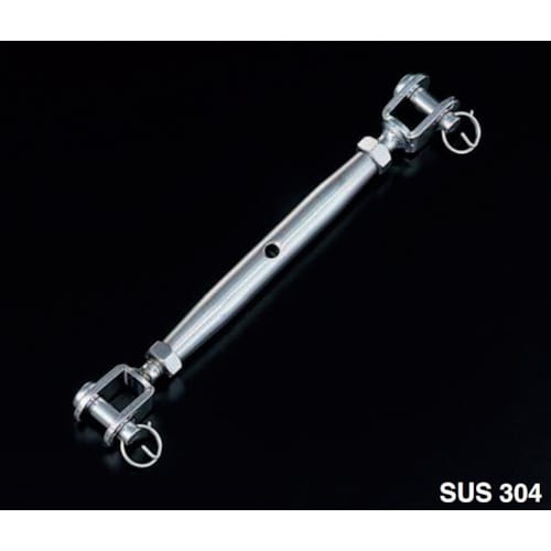 ステンレス製で枠がパイプ式のターンバックルです。ワイヤロープの張り具合を調整します。