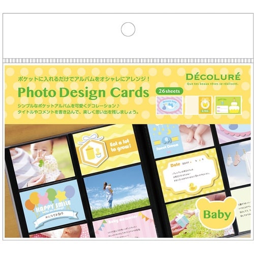 ポケットアルバムに差し込むだけで、L判のポケットアルバムを簡単にかわいくデコレーションできるデザインカードのセットです。テーマや好みに合わせてお選びいただけます。