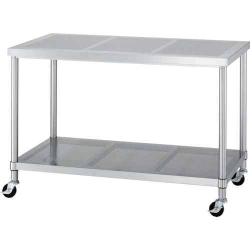 シンコー ステンレス(SUS430)パンチング作業台パンチングベタ棚板キャスター付 φ75ウレタン車 1500×600×800 PWPBC15060U75 1台