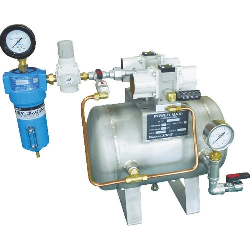 オイルフリーで無電源です。入口、出口を配管するだけで、低圧の空気を増圧し、高圧の空気を作ります。ミクロミストフィルターを標準で搭載、エア中の不純物を除くことで、シリンダの長寿命をはかっています。 |