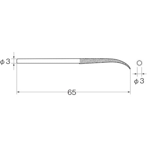粒度(#):400 | 全長(mm):65 | 刃長(mm):30 | 幅(mm):3 | 刃厚(mm):3 | 軸径(mm):3 | 単位:1袋(1…