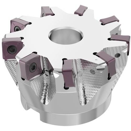 経済的な両面8コーナーインサートを備え、高い切込み深さを提供するフェースミルです。