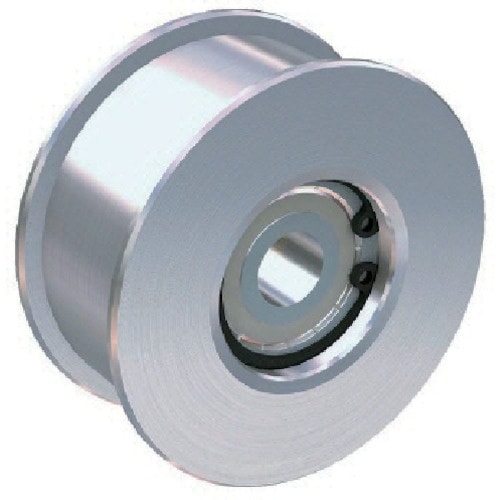 平ベルトの駆動ローラーとしてご使用になれます。フランジ高さがベルト厚さよりも低いので、ローラーの上まで搬送ワークを通すことができます。ボールベアリングは止め輪で固定してあります。 |