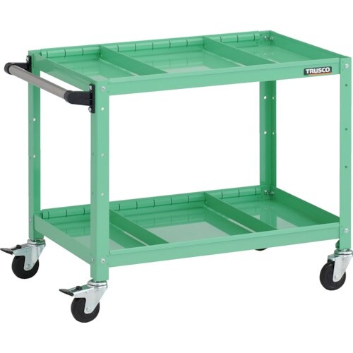 TRUSCO ツールワゴン ラビットワゴン 700X450XH600 2段 仕切板2段付 ハンドル付 ゴム車輪 ヤンググリーン RBW672S2HYG 1台