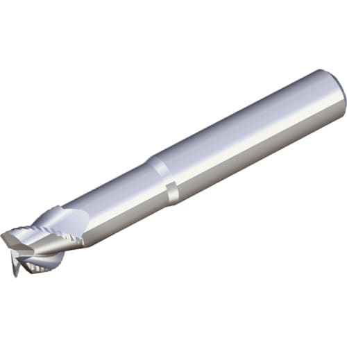 鋼・アルミ合金・非鉄金属の汎用加工に適しています。3枚刃、非鉄用ラフィングエンドミル(ショート刃・コーナーR0.2タイプ)です。超微粒子超硬母材です。C付は、円筒シャンクタイプです。粗加工用。 |