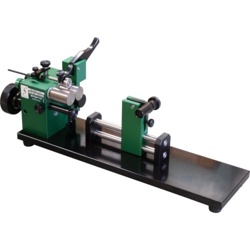 外径基準の振れ測定を個人差なく、効率的に測定できる治具です。タイミングベルト+プーリーによる駆動システムとグリップ付ハンドルによる滑らかな回転で測定できます。 |