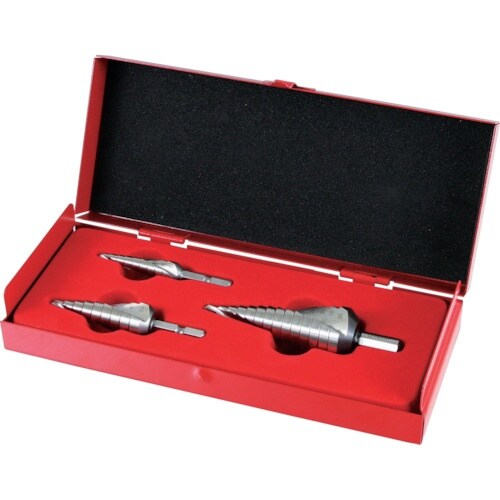 スパイラルカットシステムで切れ味がアップしています。ステップだから多用途に使えます。1本で径の違う穴あけができます。バリ取り、穴の繰り広げ、面取り作業にも便利です。センターポンチ作業が不要です。 |