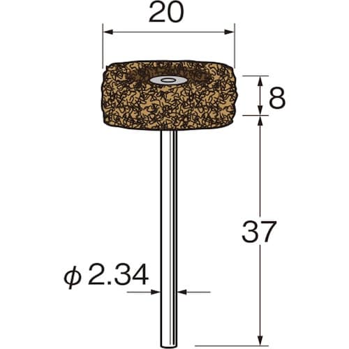外径(mm):20 | 幅(mm):8 | 軸径(mm):2.34 | 軸長(mm):37 | 最高使用回転数(rpm):10000 | 粒度(#):…