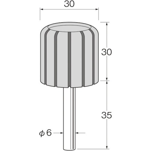幅(mm):30 | 最高使用回転数(rpm):9000 | 外径(mm):30 | 軸径(mm):6 | 軸長(mm):35 | 単位:1袋(2本)