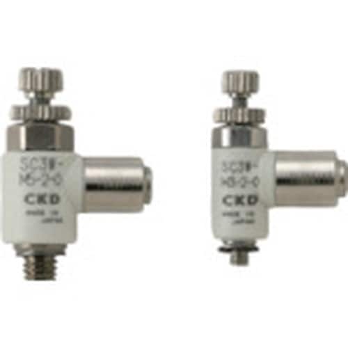 エルボタイプの速度制御弁でワンタッチ継手付です。配管ネジ部にはシール剤をコーティングしています。回転するため、配管方向が自由自在です。樹脂部には難燃材料(UL94規格V−0相当)を採用しています。 |