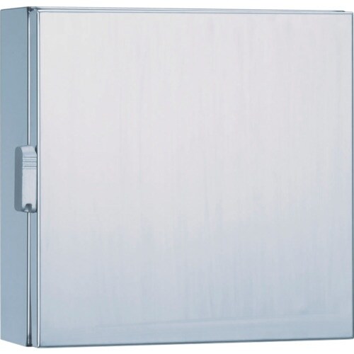 材質はステンレス(SUS304)ミラー仕上げを使用しています。開閉が容易なコーナーハンドルです(密閉力が強く南京錠での施錠も可能)。防水・防じんパッキン付です。屋内・屋外兼用タイプです。 |