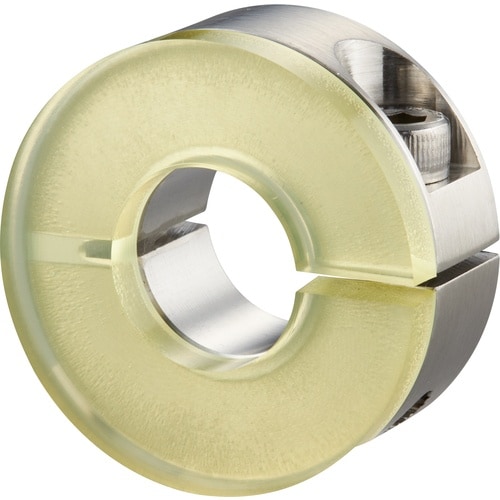 締結力の強いスタンダードスリットカラーです。面で締め付けるため締結力が強く、シャフトに傷が付きにくいタイプです。ダンパー付のため、衝突などによる衝撃音を緩和します。