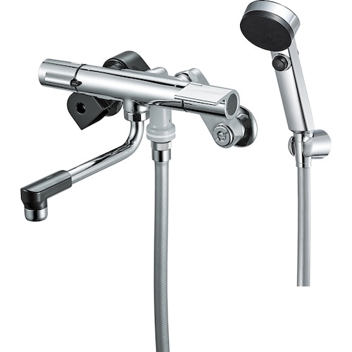 適温キープ:サーモカートリッジの働きで湯水の混合量を自動で調整し、常に一定の温度を保つことが出来ます。クリック機構:切替ハンドルにクリック機構を採用しました。