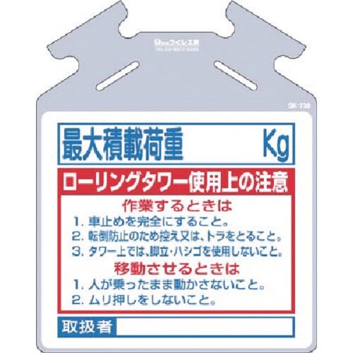 つくし工房 つくし 筋かい用つるしっこ[…荷重 kg]ローリングタワー SK738 1枚 A07M-1964