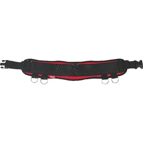 腰痛対策用のサポートベルトです。工具の収納可能なDカンが4つついています。蒸れにくく、通気性の良いWラッセル生地を使用しています。装着時もズレにくい特殊ラバー生地を使用しています。 |