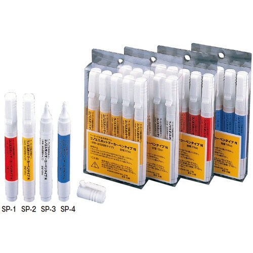 測点、境界、穴あけ位置のマーキングに使用できます。油性ですが硬化するまでは水で拭き取れます。使用中に容器を倒してもペイントは流出しません。土木、建築、測量、鉄道、その他の工事現場のマーキングに。 |