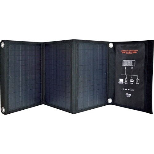 パワーバンクやリチウムイオン蓄電池を掲載した製品をソーラー充電するのに最適なソーラーパネルです。太陽光で充電できるので、停電時や非常時の強い味方になります。非常時やアウトドアに。 |