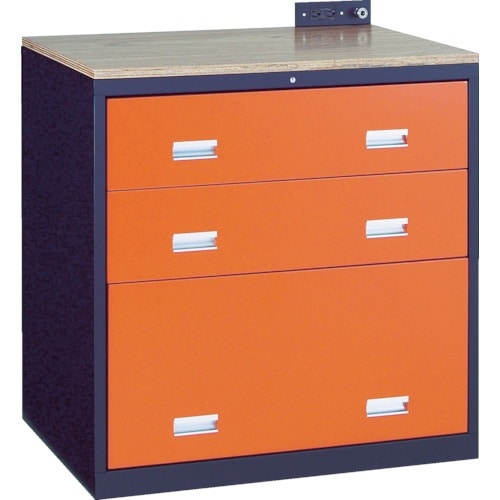 木製天板の上で作業ができます。オールロック機構(全ての引き出しが同時にロックされます。)ラッチ機構(各引き出しにストッパーを内蔵しています。