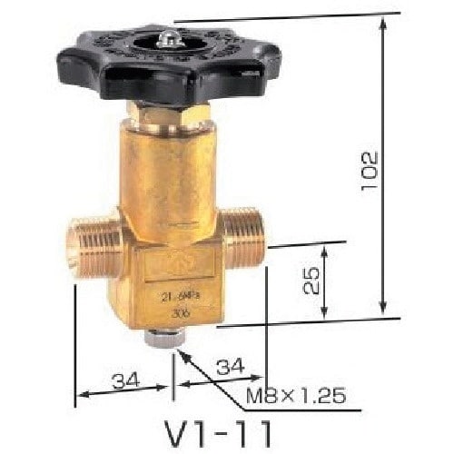 高圧ガスを開閉する事が可能です。集合装置とボンベを繋げてガスのON/OFFの切り替えを行うバルブです。 |