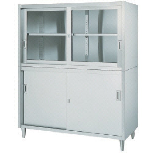 シンコー シンコー ステンレス保管庫 二段式アジャスト付 VAG型 (上ガラス戸・下ステンレス戸) 900×450×1750 VAG9045 1台 A07N-4312