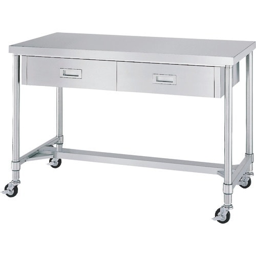 シンコー ステンレス(SUS430)作業台片面引出付H枠キャスター付 φ100ナイロン車 1800×900×800 WDHC18090N100 1台