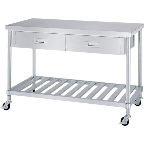 シンコー ステンレス(SUS430)作業台片面引出付スノコ棚板キャスター付 φ100ウレタン車 ステンレス金具 900×750×800 WDSC9075800SU100 1台