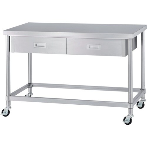 シンコー ステンレス(SUS430)作業台片面引出付四方枠キャスター付 φ75ウレタン車 ステンレス金具 750×450×800 WDZC7545800SU75 1台