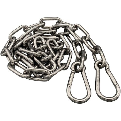 溶接チェーンは切断済み、両側にフックを取り付けています。オールステンレス製のため、防錆性・耐候性に優れています。転倒防止、進入禁止、境界用の仕切りに。