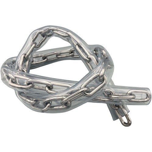 溶接チェーンは切断済み、保護チューブ付きです。オールステンレス製のため、防錆性・耐候性に優れています。転倒防止、進入禁止、境界用の仕切りに。