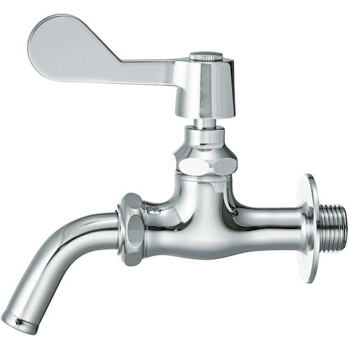 レバー式の単水栓です。簡単に止水・吐水:通常の三角ハンドルに比べ、操作がしやすく、肘や手の甲を使って簡単に開け閉めできます。感染症対策にも最適です。 |