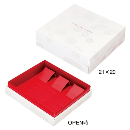 洋菓子向けのギフトケースです。別売の仕切を使えば、菓子サイズに合わせて仕切幅を調整できます。インロー形式で包装紙が綺麗に巻けます。フタ・ソコ・中箱・仕切・中枠の5点セット。 |