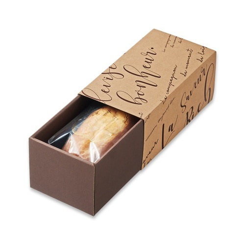 底はGフルート段ボール仕様で強度があります。スリーブはナチュラルなクラフト素材。サイドはお菓子がとり出しやすいスライド形式です。スリーブ・中箱の2点セット。 |