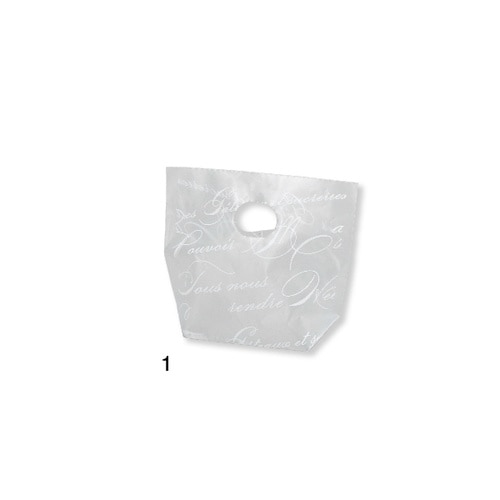 仏語デザイン入りのお持ち帰り用ポリ袋です。手抜きタイプ。素材の厚みが50μmのため、お客様への無償配布が可能です。底マチ部分に有料化対象外必要表記あり。