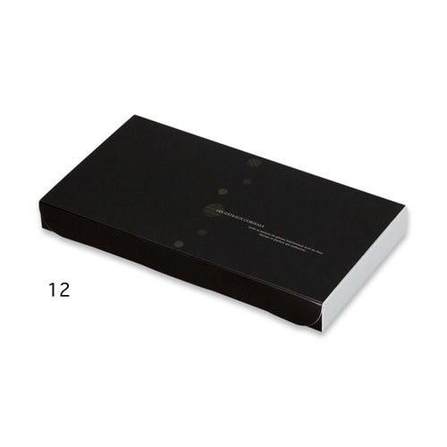 平置きタイプのクッキーケースです。1角に重ねて2枚入れられます。12仕切りタイプ。仕切の下にクッション性・ゆがみ防止の厚めのパットが入ります。本体・仕切A・仕切B・パットの4点セット。 |