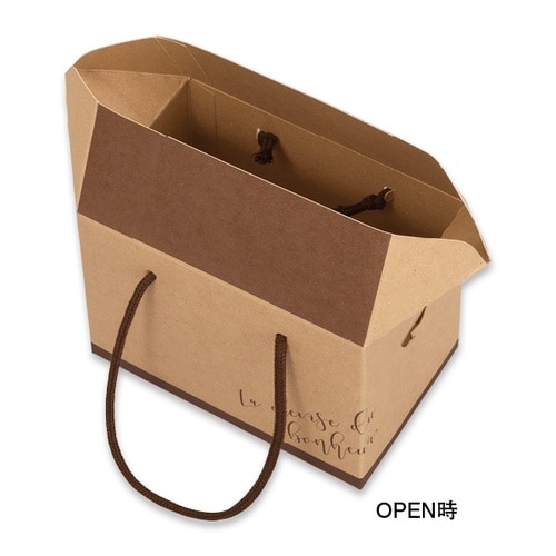 持ち手つきバッグ型ギフトケースです。差し込みでしっかりロック。本体・ひも×2本の3点セット。組立説明書付き。 |