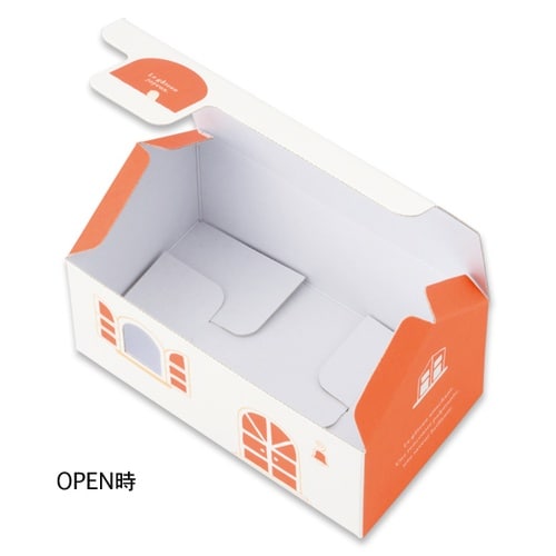 ディスプレイ性抜群のお家型ギフトケース。素材感のあるGフルート段ボール。本体一体型。 |