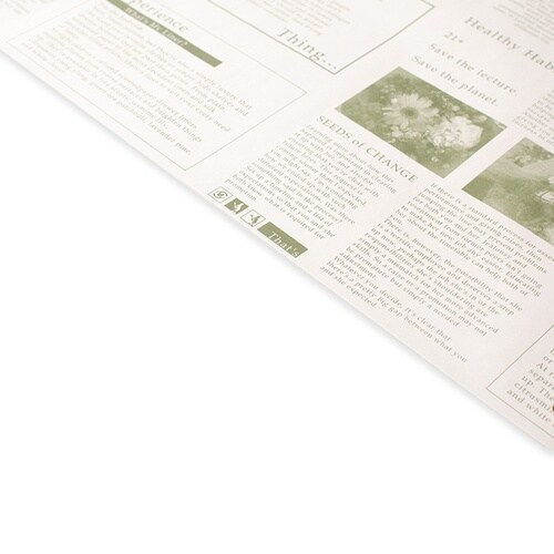 英字新聞風の平版包装紙です。白地にグリーンのデザイン。入数:500枚 |