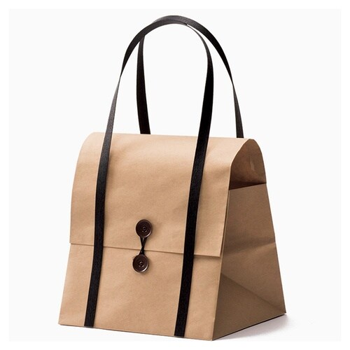 クラフト紙のナチュラルな質感をいかしました。封筒のような紐どめがアクセントになっている、宝箱のようなバッグです。入数:100枚