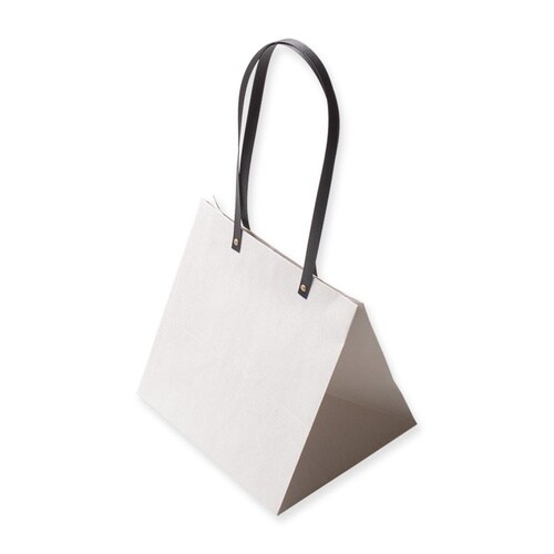 女性に人気の高いホワイトクラフト紙を使用した、こだわりのバッグです。持ち手の紙バンドは、お花屋さん向けに長くしてあります。紙バンドの色はブラック、リベットの色はゴールドです。入数:100枚