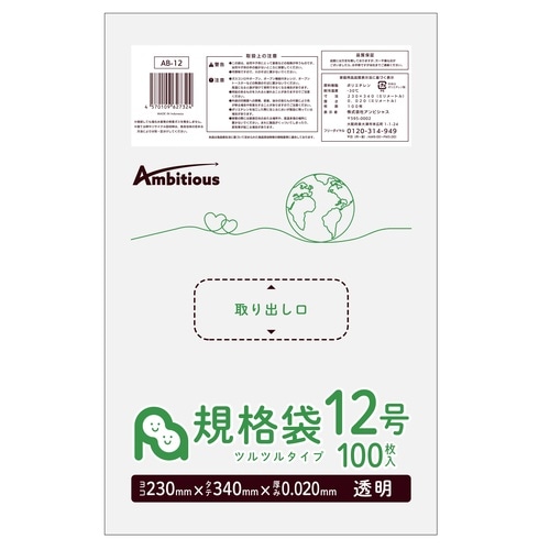 アンビシャス 規格袋12号0.020厚透明100枚x60冊  A07N-8327