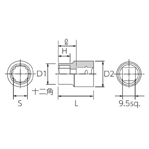 9.5SQ インチサイズ ソケット 5/8 十二角