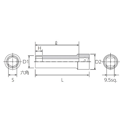 差込角(sq.):9.5 | サイズ(S;inch):7/16 | ソケット部外径(D1;mm):16 | 差し込み部外径(D2;mm):17 | 深…